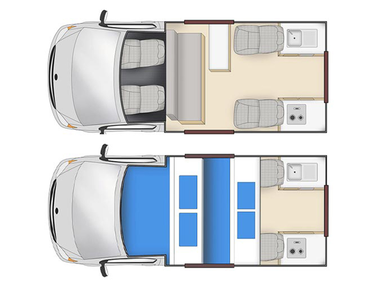 This Endeavour Campervan is perfect for families or friends requiring a 4 berth campervan and willing to forgo the shower and toilet facilities available in larger 4 berth motorhomes.