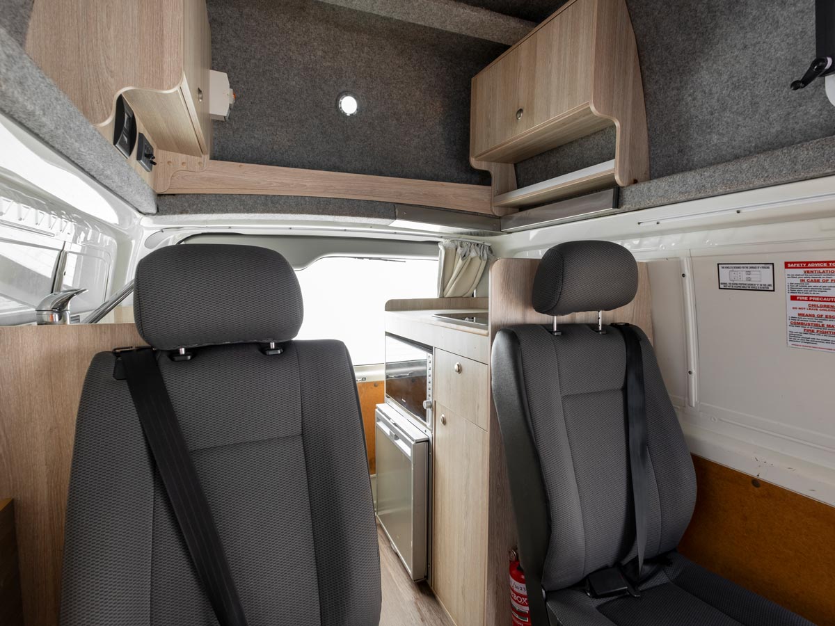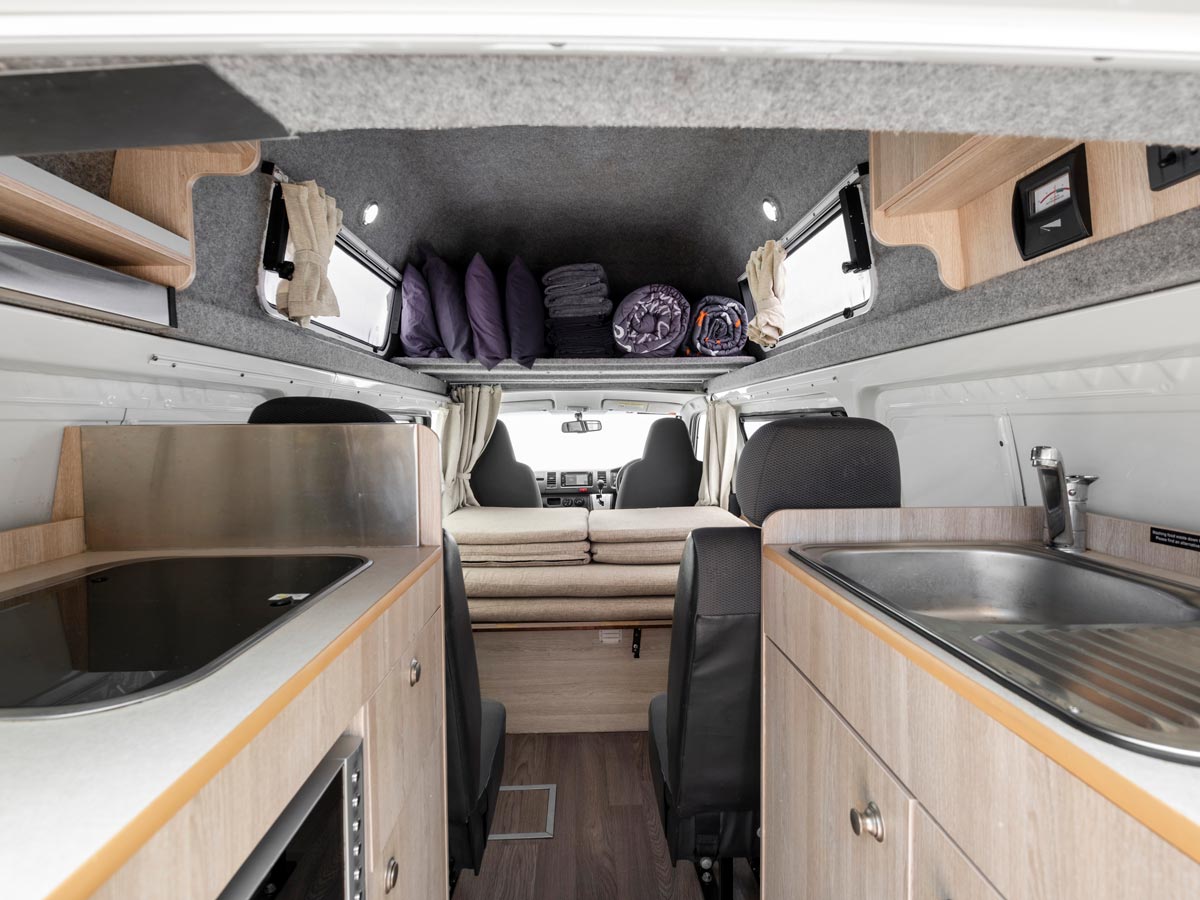 You will find a fully equipped kitchen with gas stove, microwave oven and fridge/freezer. This campervan can be fitted with 2 baby or booster seats or 1 of each in rear forward facing seats. Baby capsules for infants under 6 months old are permitted. However, guests will need to prepare their own baby capsules as they are not available for hire.