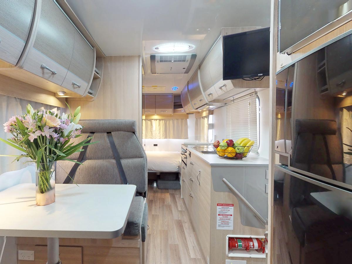 The 4 Berth Seeker motorhome (brand new to under 5 years old) allows you to explore the wonders of Australia at your leisure in comfort and style. Seating up to 4 people, the Seeker features a 6-speed diesel engine, power steering and a CD player in the driver's cabin, Digital TV, shower and toilet facilities as well as full kitchen equipment.