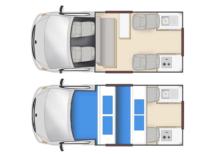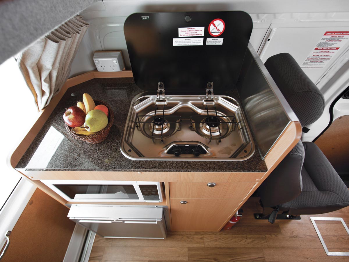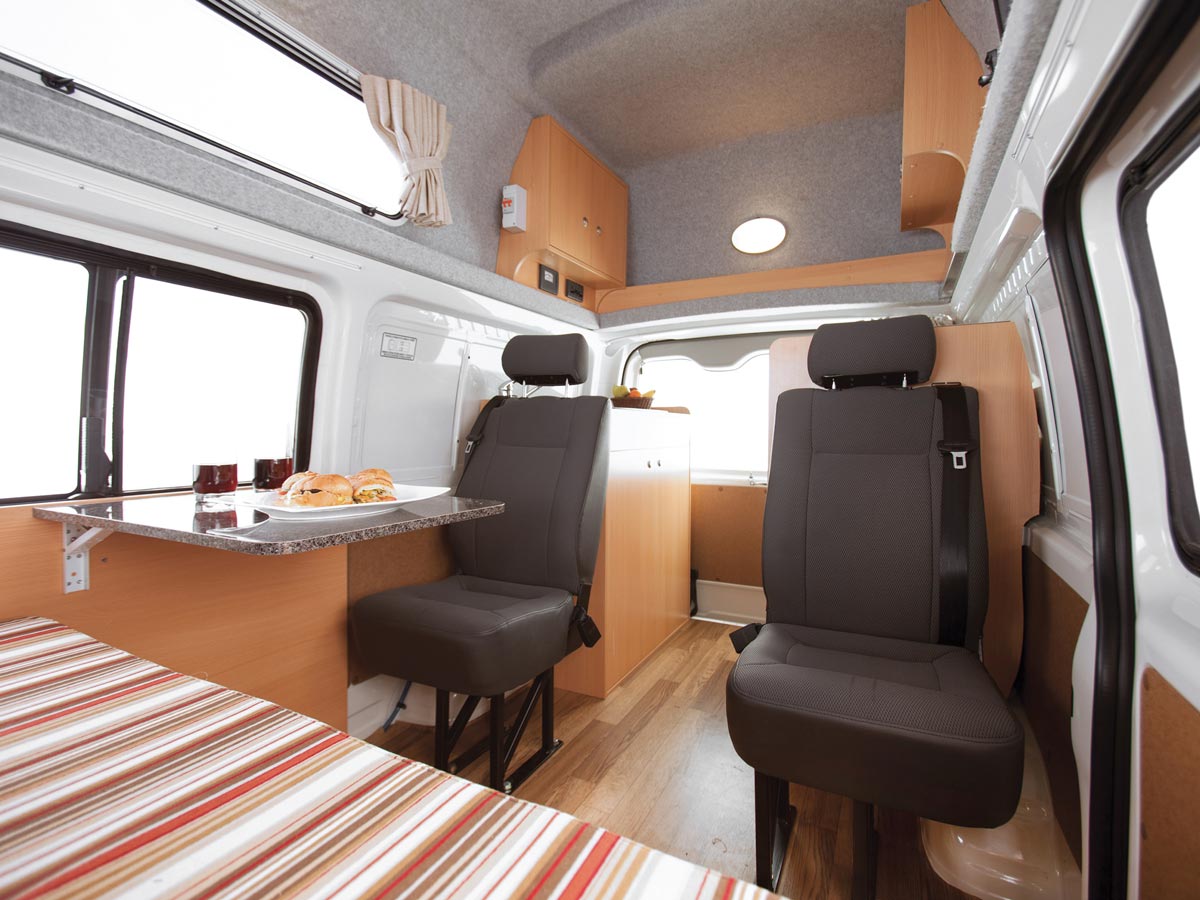 There are 2 double beds and manual 2.7 litre engine ensure easy handling and a smooth ride. You will find a fully equipped kitchen with gas stove, microwave oven and fridge/freezer. This campervan can be fitted with 2 baby or booster seats or 1 of each in rear forward facing seats. Baby capsules for infants under 6 months old are permitted. However, guests will need to prepare their own baby capsules as they are not available for hire.